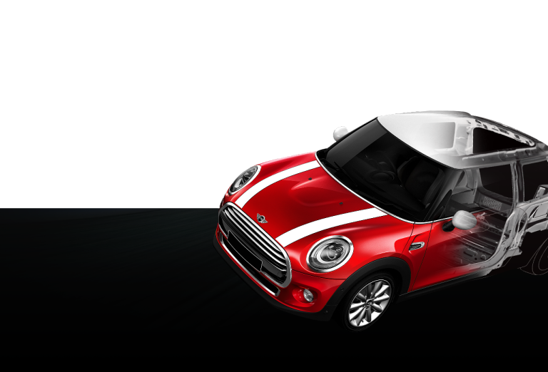 The body structure of a MINI is rigid, but collapsible – essential for absorbing impact. It shields you at all times in the case of impact from the front, rear and side, or if the car rolls over. Using high tension steel, optimized for weight and rigidity, your MINI retains a sporty feel to the drive. Reducing body torque, making that super-tight handling even sharper.