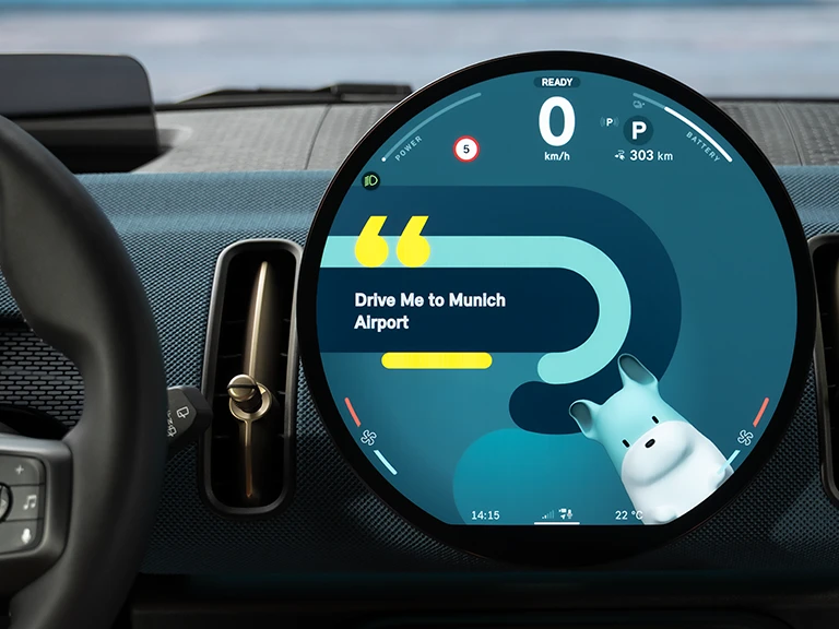 The standard MINI Intelligent Personal Assistant allows you to use your voice to operate functions like navigation, telephone, radio, temperature, journey info, and more. The system can be activated using the greeting "Hey MINI" or by pressing the push-to-talk button on the steering wheel. Best of all, you can choose between two avatars for your personal assistant: A stylized version of your MINI, or "Spike", MINI’s mascot, which is available at an additional cost.