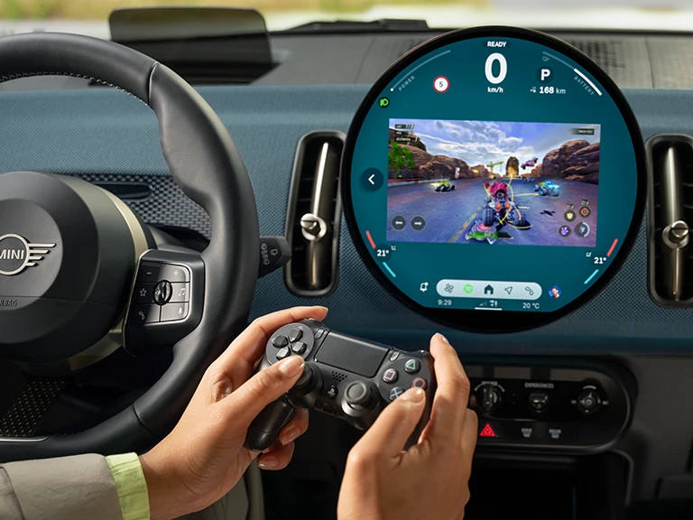 A gaming console integrated directly into the MINI Display, Available AirConsole, allows you to play while parked. With up to 50 third party apps to choose from, you'll never have a boring rest stop again.