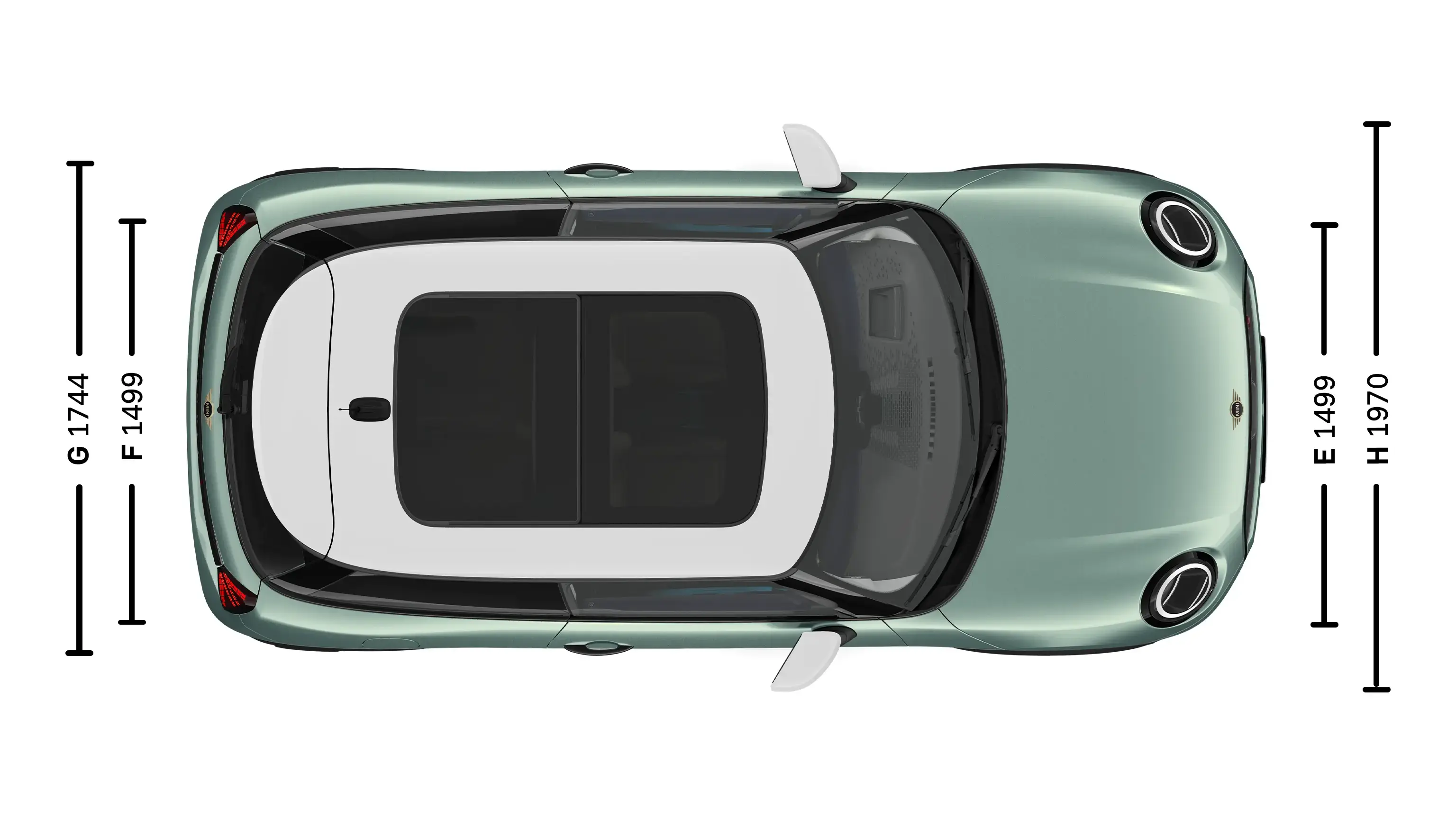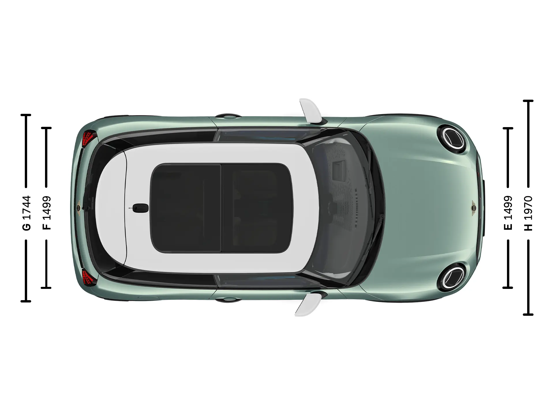 (H) Vehicle width included external mirrors 1,970 mm